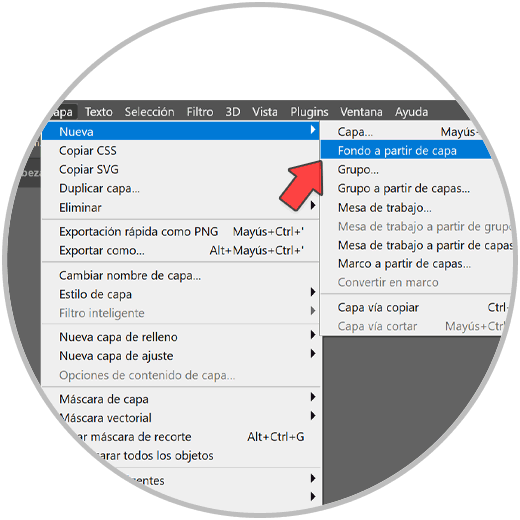- Ahora nos iremos al menú de “Capa – Nueva – Fondo a partir de capa”.