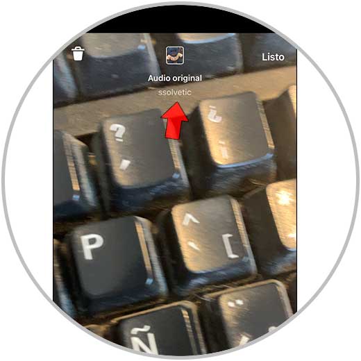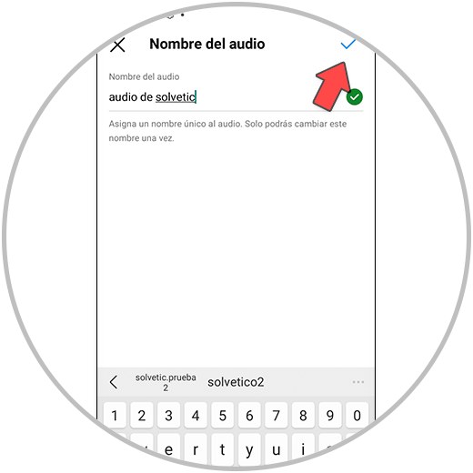 Aquí va a aparecer “Audio original”. Borra esto y escribe el nombre que le quieras poner al audio. Para confirmar pulsa en el check en la esquina superior derecha.