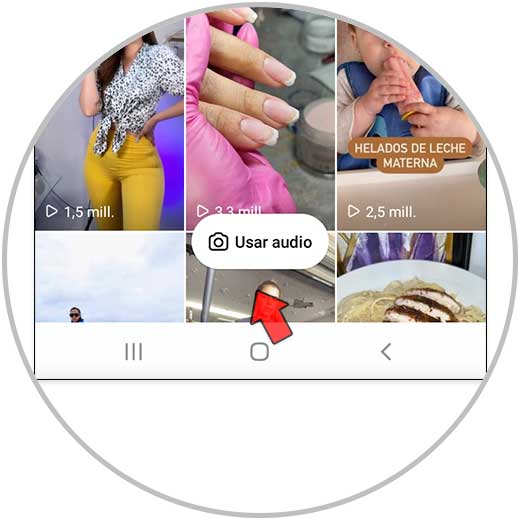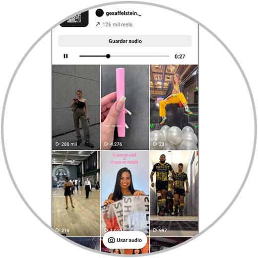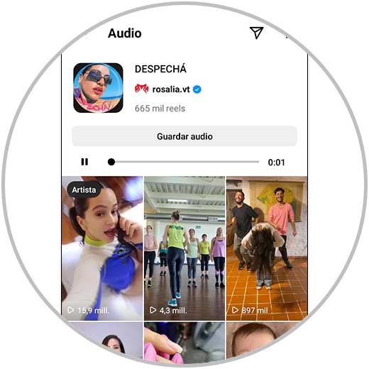 Para guardar el audio en tendencia y utilizarlo en un futuro, pulsa sobre la opción superior. Para usar el audio en tendencia para crear un nuevo Reel en este momento, pulsa en “Usar audio”.
