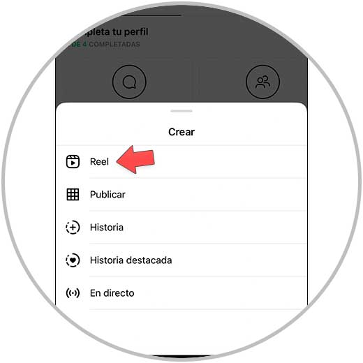 En el desplegable de opciones que encontraremos, pulsamos en “Reels”.