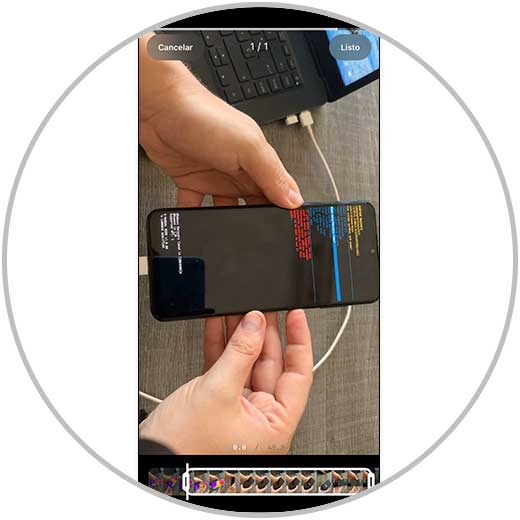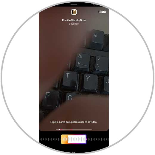 Ahora, selecciona en la barra inferior la parte del vídeo de la que quieres tomar el audio y pulsa “Listo”.