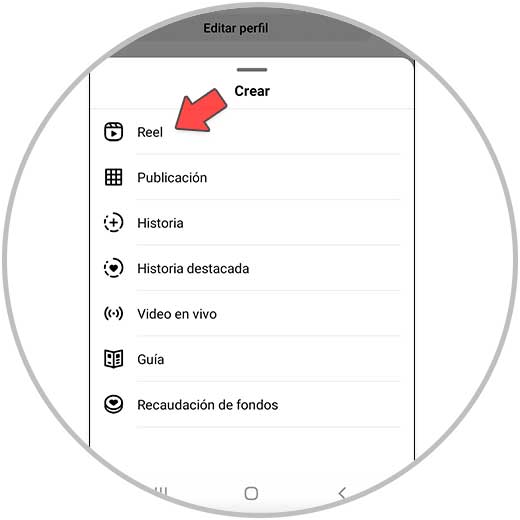 Hecho esto, selecciona “Reel” en el desplegable de opciones.