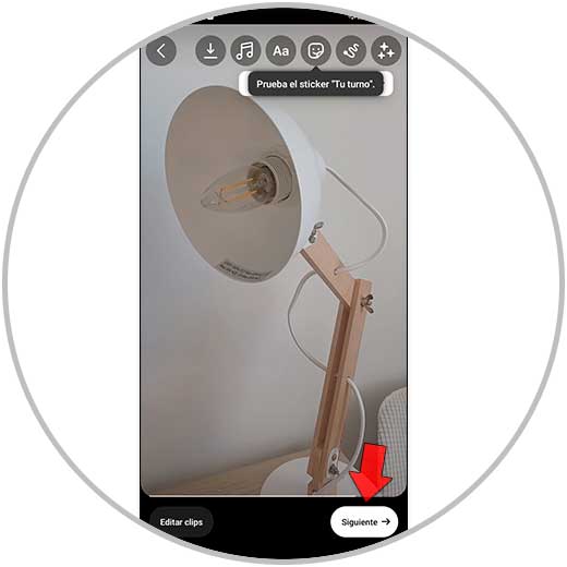 En la parte superior podrás añadir opciones como efectos, dibujar, texto.. Una vez añadido pulsa en “Siguiente”.