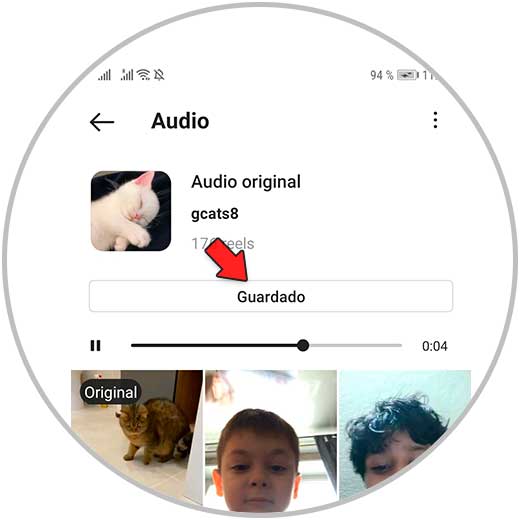 Ahora, en la parte superior de la pantalla pulsa en “Guardar audio” y el audio se habrá guardado para utilizar en un futuro en próximos Reels.