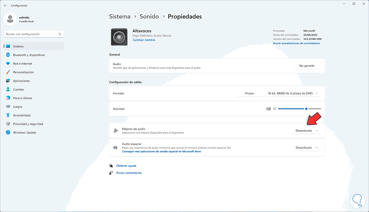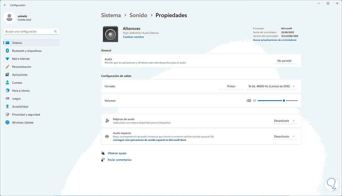 El controlador de audio se encarga de que el audio y las características de este trabajen como debe ser en Windows 11.