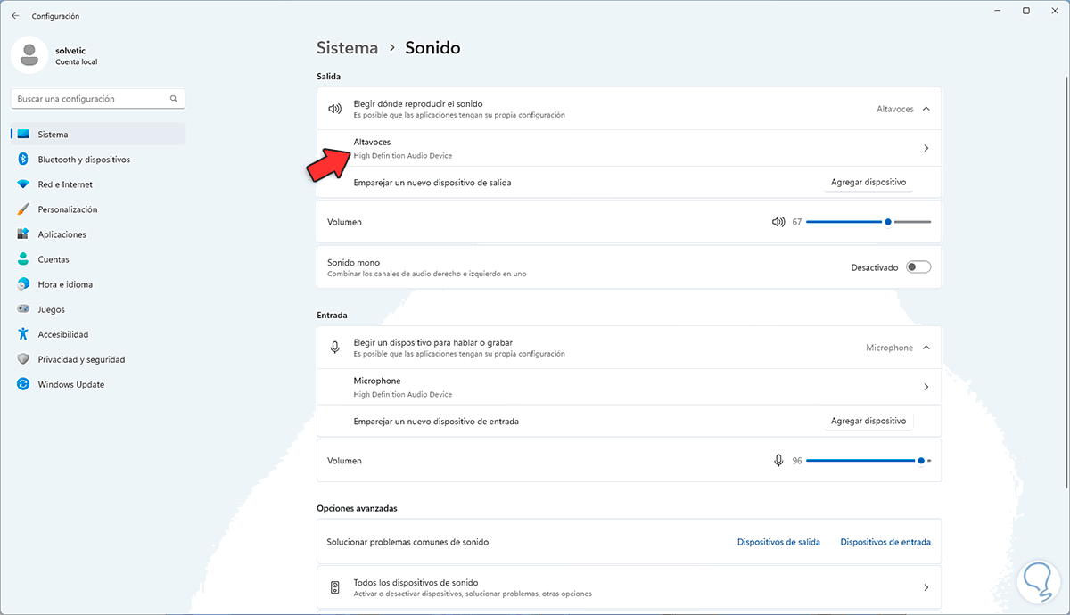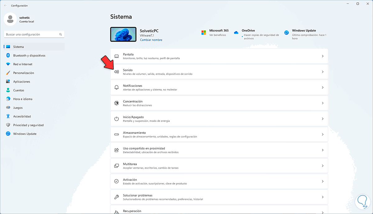 Para revisar esto, vamos a "Inicio - Configuración - Sistema - Sonido":