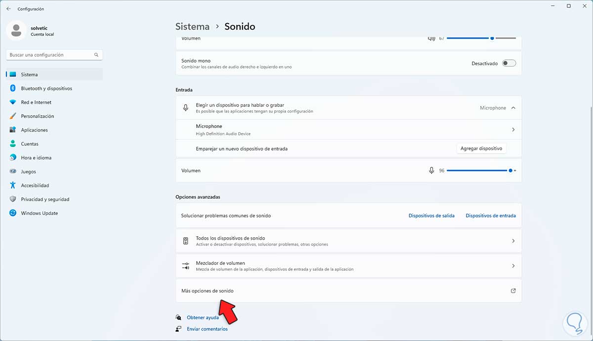 Damos clic en "Mas opciones de sonido" ubicado en la parte inferior: