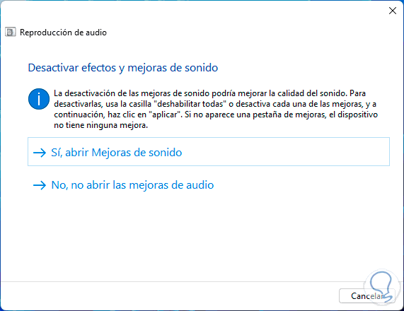 Las mejoras de audio están enfocadas en optimizar el audio en Windows 11 a través de algunas mejoras a nivel de frecuencias, tasas y más, pero esto puede causar que el sonido no salga como es.