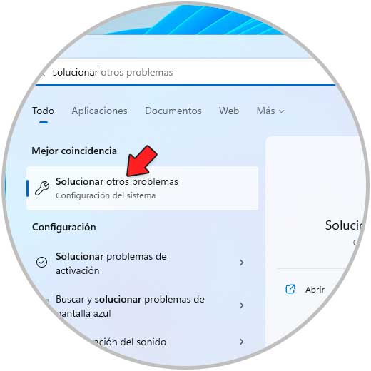 Para hacer uso de este en el buscador de Inicio ingresamos "solucionar" y luego damos clic en "Solucionar otros problemas":