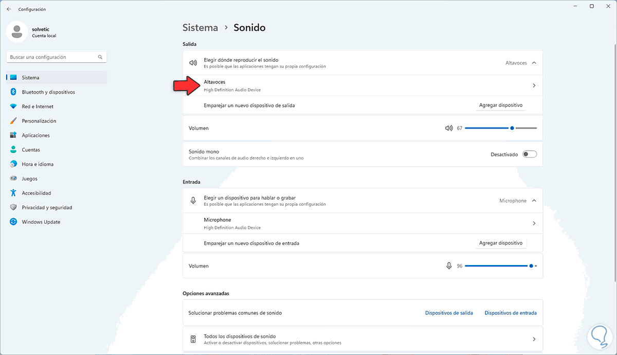 Damos clic en "Altavoces":