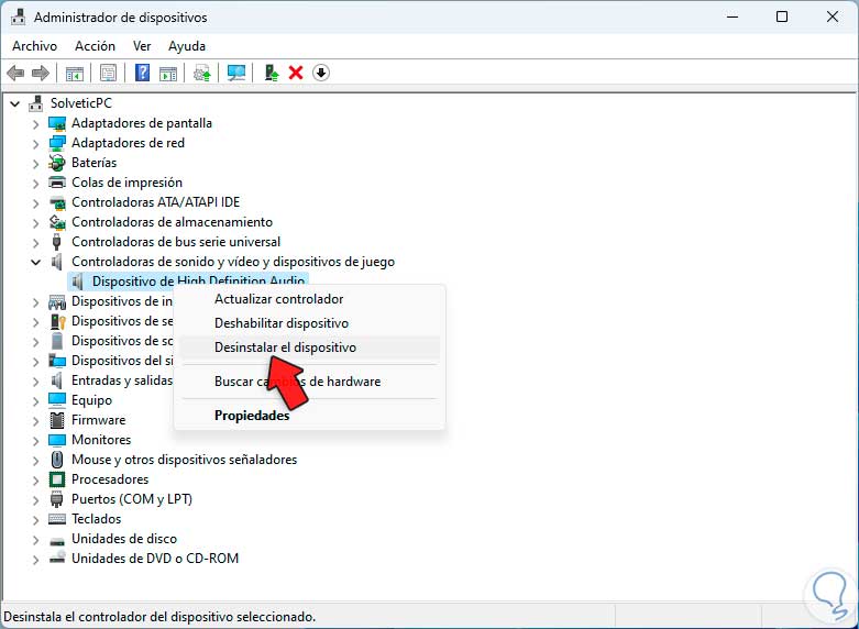 6. Salida de Audio Windows 11 No Funciona | Solucion Desinstalando el controlador