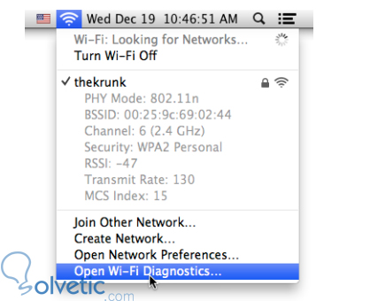 Vemos que tenemos la información detallada del funcionamiento de nuestra red Wi-Fi yendo desde el modo de conexión, al tipo de seguridad e inclusive la tasa de transmisión de datos, pero si queremos ver un poco más podemos hacer click sobre la opción de diagnóstico de Wi-Fi lo que nos permite hacer un diagnóstico más a fondo de nuestra red: