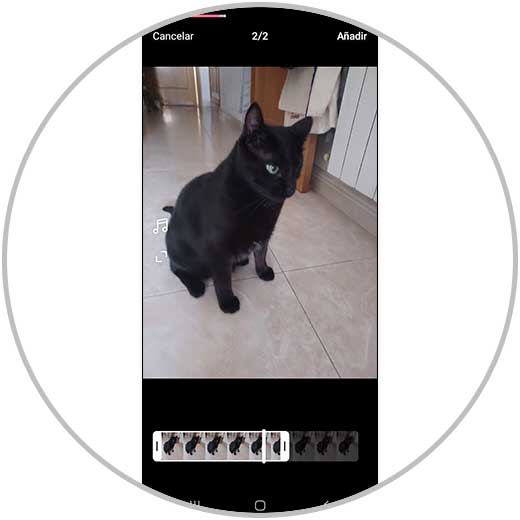 Repite el proceso, pulsando en “+” y seleccionando una foto de la galería con tantas fotos como quieras añadir, y seleccionando el tiempo en la barra inferior como hemos explicado. Una vez hecho, pulsa “Añadir”.