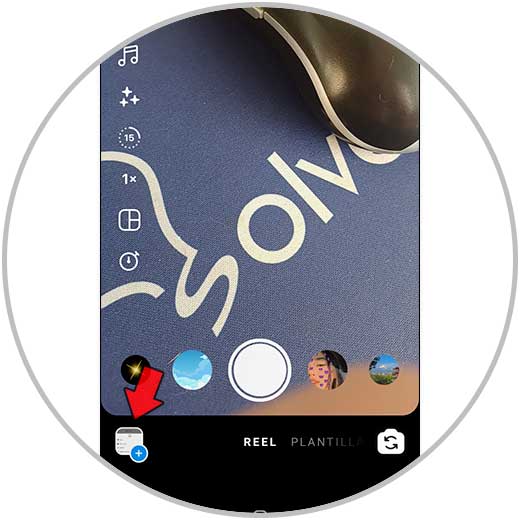 Ahora, dentro de Reels, pulsa en el icono de la miniatura que aparece en la parte inferior izquierda de la pantalla, a través de la cual accederemos a la galería y el contenido que tenemos guardado en la misma.