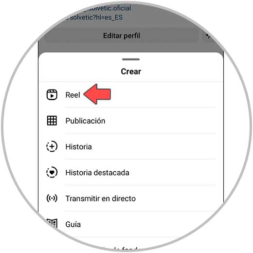 En el desplegable de opciones que aparecerá en la parte inferior de la pantalla, pulsa “Reel”.