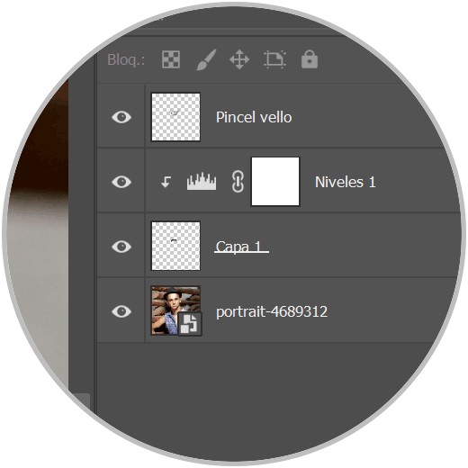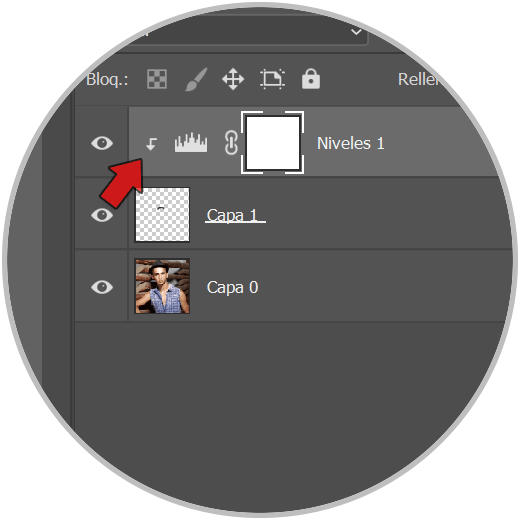 Vamos a seguir adaptando nuestro bigote usando una nueva capa de ajuste de “Niveles”, la creamos: