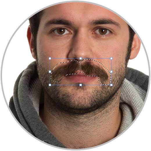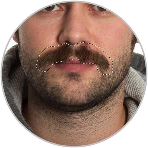 Realizamos una selección alrededor del bigote, no te preocupes por la selección porque podremos después retocarla.