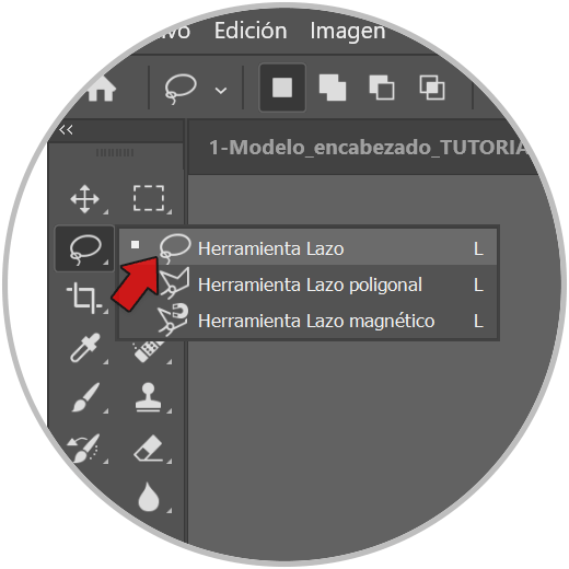 Empezado yendo a la imagen con bigote. Vamos a elegir la herramienta de selección de “Lazo”.