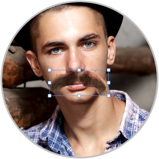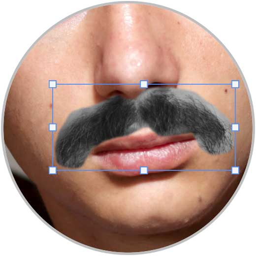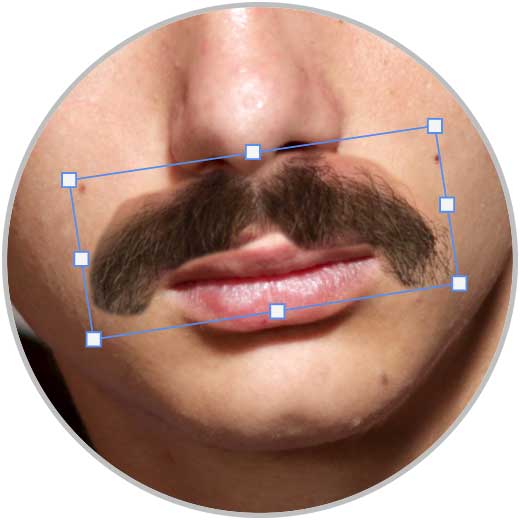 Vamos a colocar bien este bigote con nuestra imagen colocándolo en la zona más óptima. Para ello puedes entrar en el modo transformación con la siguiente combinación de teclas e irlo adaptando a la imagen con los reguladores en los bordes:
