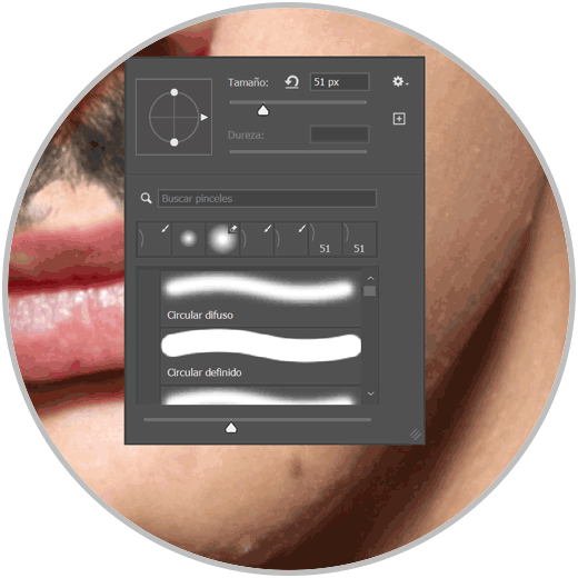Puedes cambiar el tamaño, Opacidad y color del pincel para darle más realismo a la hora de pintar el vello facial:
