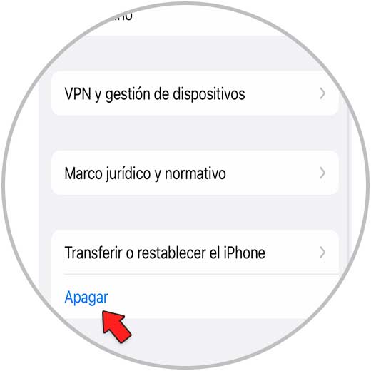 Lo siguiente que tienes que hacer es ir hacia la parte inferior de opciones y pulsar en “Apagar”