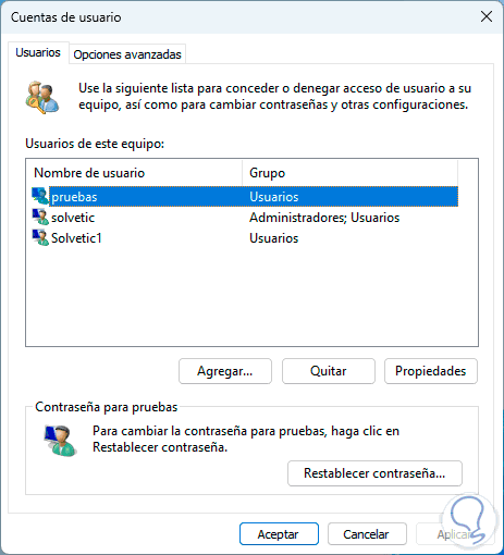 Ahora es posible eliminar un usuario extra que esta creado en el sistema por razones administrativas o de acceso temporal, para quitar este usuario en el buscador de Inicio ingresamos "netplwiz" y ejecutamos el comando: