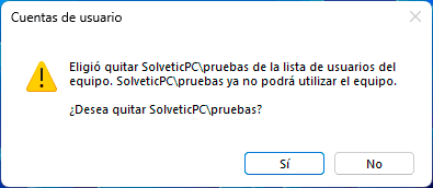 Seleccionamos el usuario con conflicto y luego damos clic en "Quitar", veremos el siguiente mensaje: