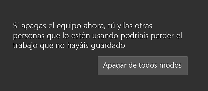Intentamos apagar o reiniciar el PC y veremos un mensaje impidiendo esta acción: