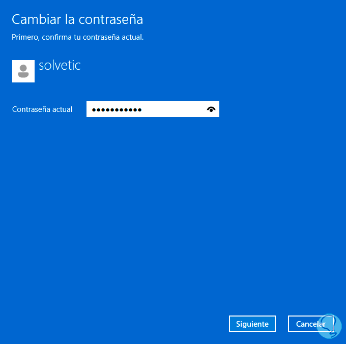 Se abrirá la siguiente ventana donde ingresamos la contraseña actual: