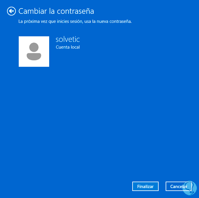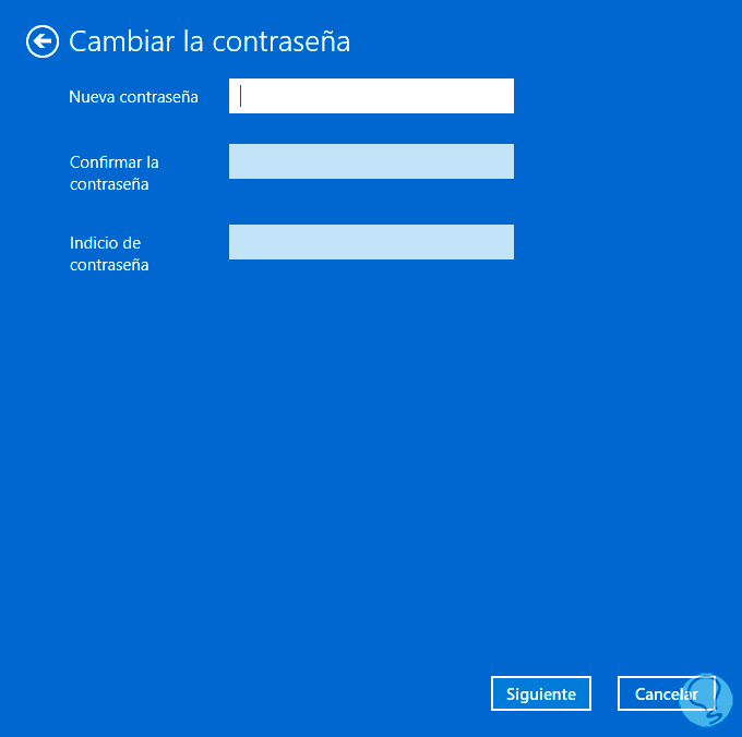 Damos clic en Siguiente para realizar el cambio de la misma: