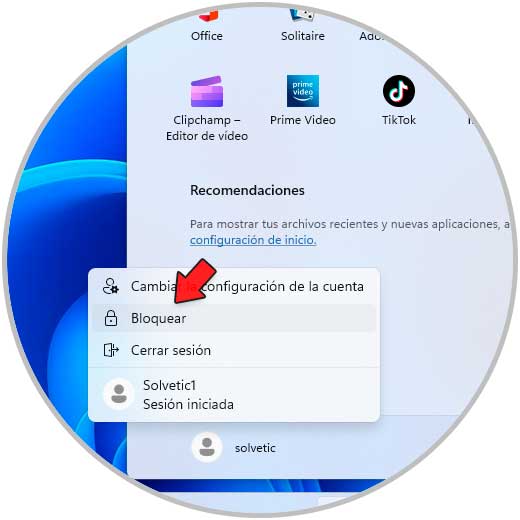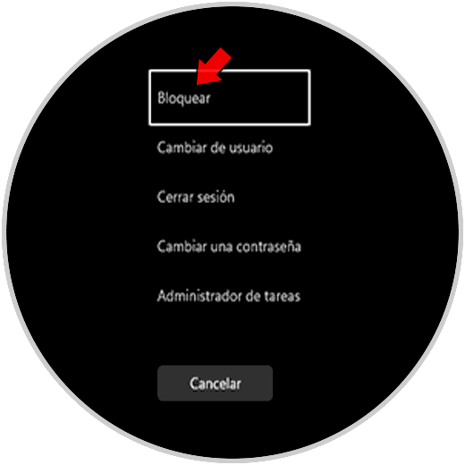 Usamos las tecla Ctrl + Alt + Supr y luego damos clic en "Bloquear":
