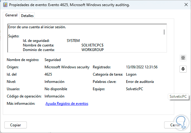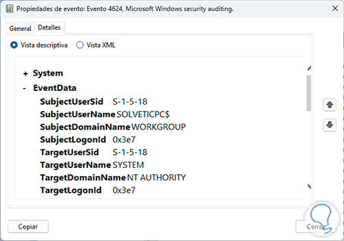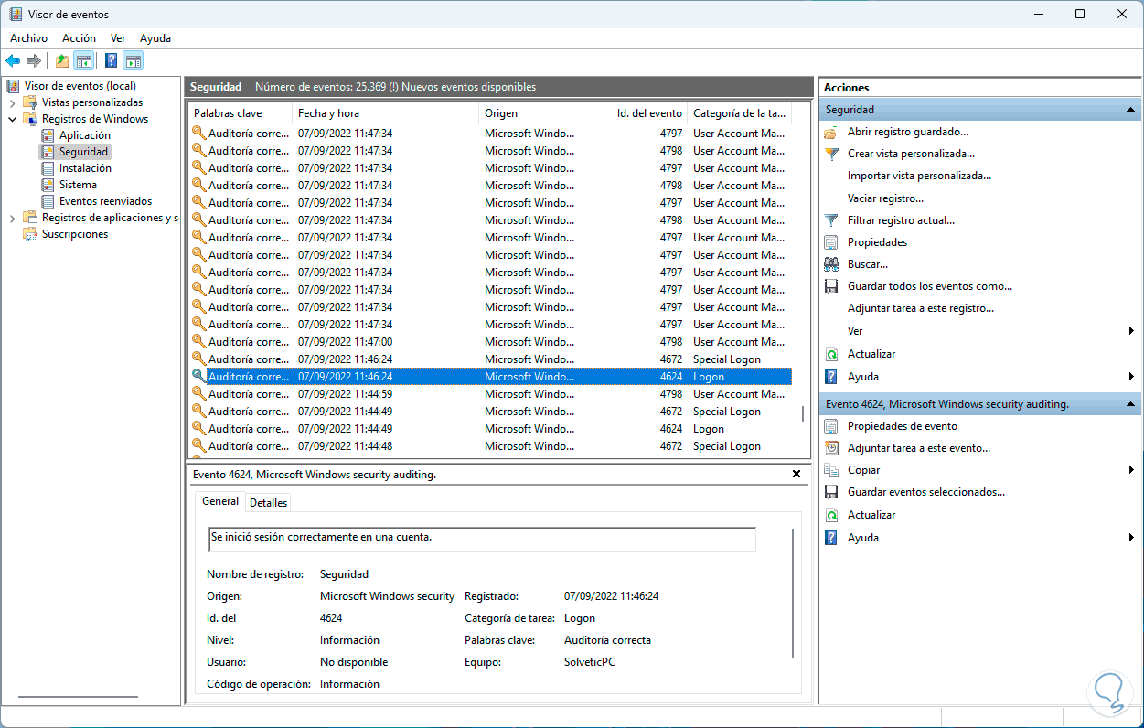 Con este paso buscamos realizar un análisis de todos los intentos de inicio de sesión válidos y erróneos en Windows 11.