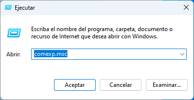 Ingresamos "comexp.msc" en la ventana de Ejecutar: