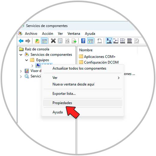 En la ventana abierta vamos a "Servicios de componentes - Equipos - Mi PC":