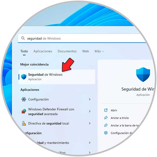 Para ello en el buscador de Inicio ingresamos "seguridad" y luego damos clic en "Seguridad de Windows":