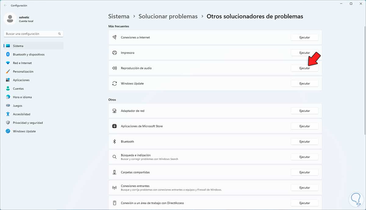 En el buscador de Inicio ingresamos "solucionar" y damos clic en "Solucionar otros problemas":