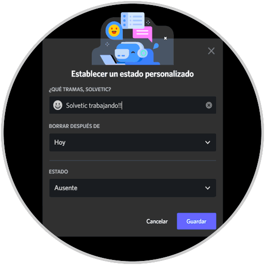 Es posible que ninguno de los estados allí disponibles sea de nuestro agrado, Discord nos da la posibilidad de cambiarlo según sea necesario.
