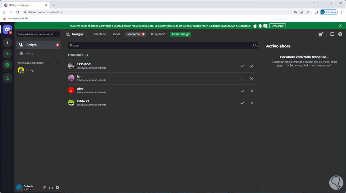 Este es el método simple, para este abrimos Discord en un sitio web en el siguiente enlace: