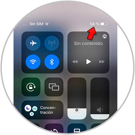 Otra de las opciones que tienes para ver el porcentaje de batería en iPhone es desplazar la pantalla hacia abajo y verás que aparece.