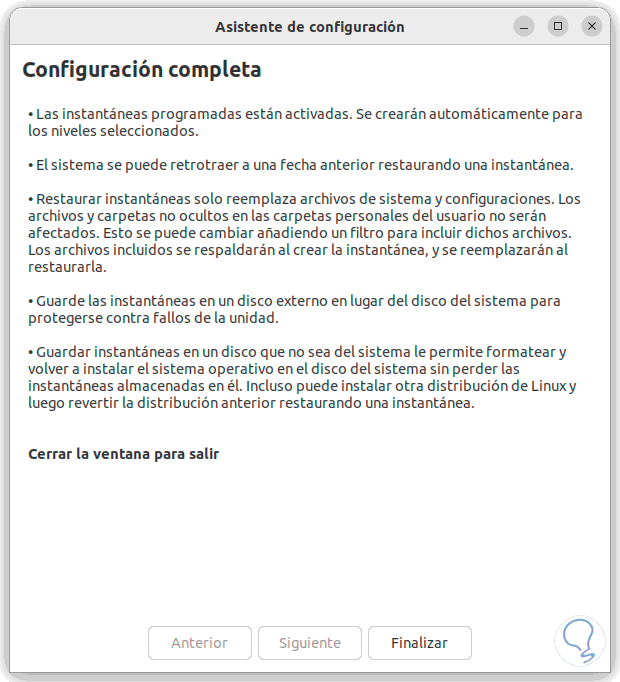 Hemos configurado Timeshift para su uso en Linux, veremos lo siguiente:
