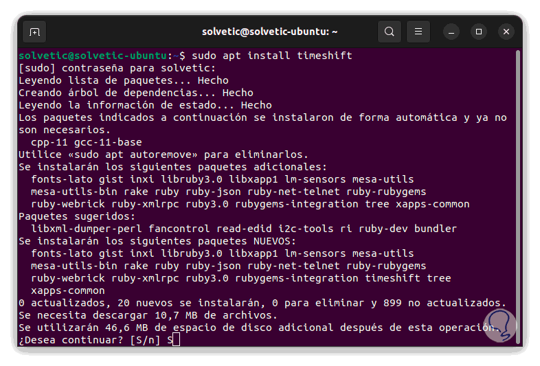 Abrimos la terminal e instalamos Timeshift con el comando: