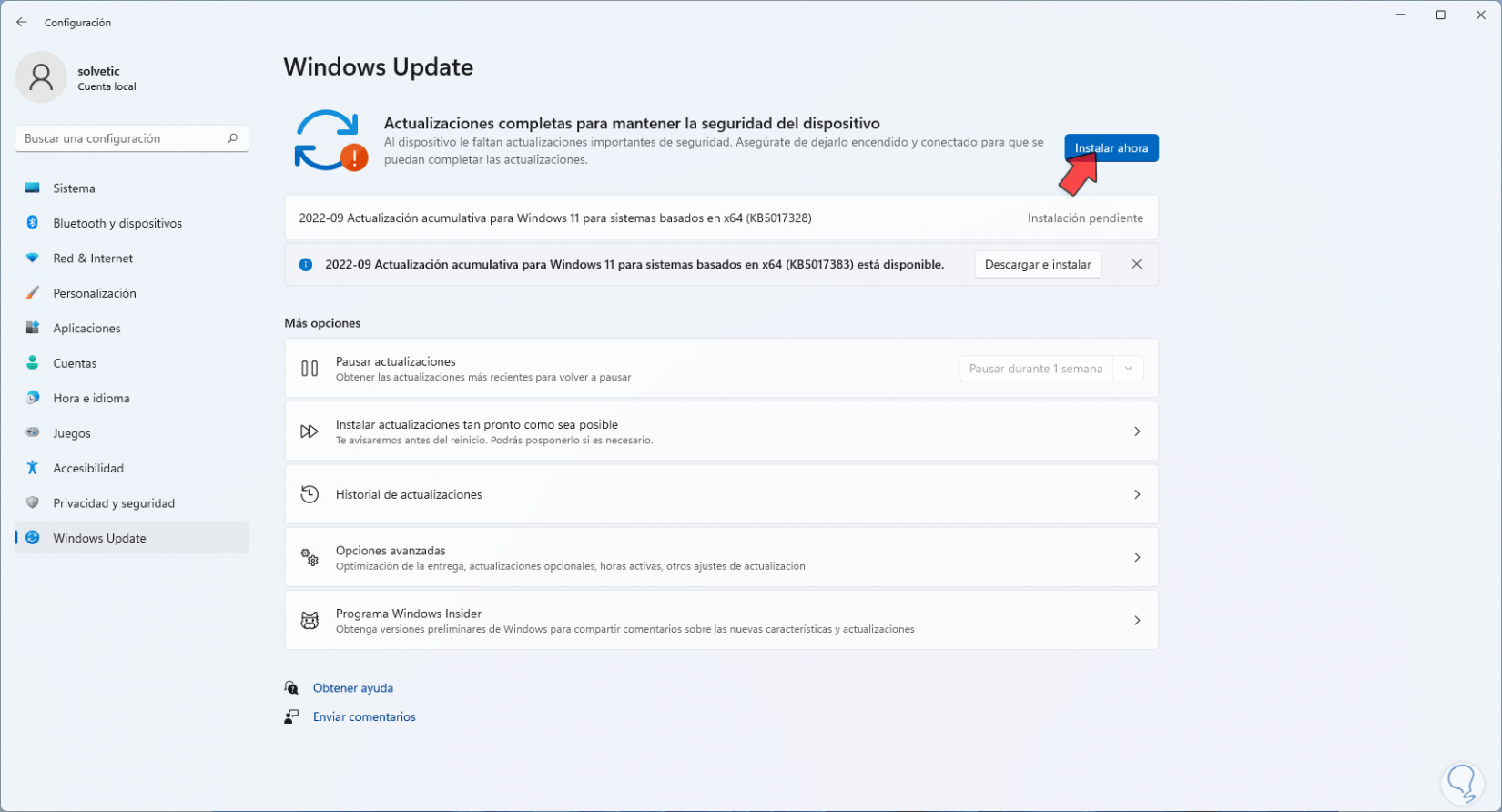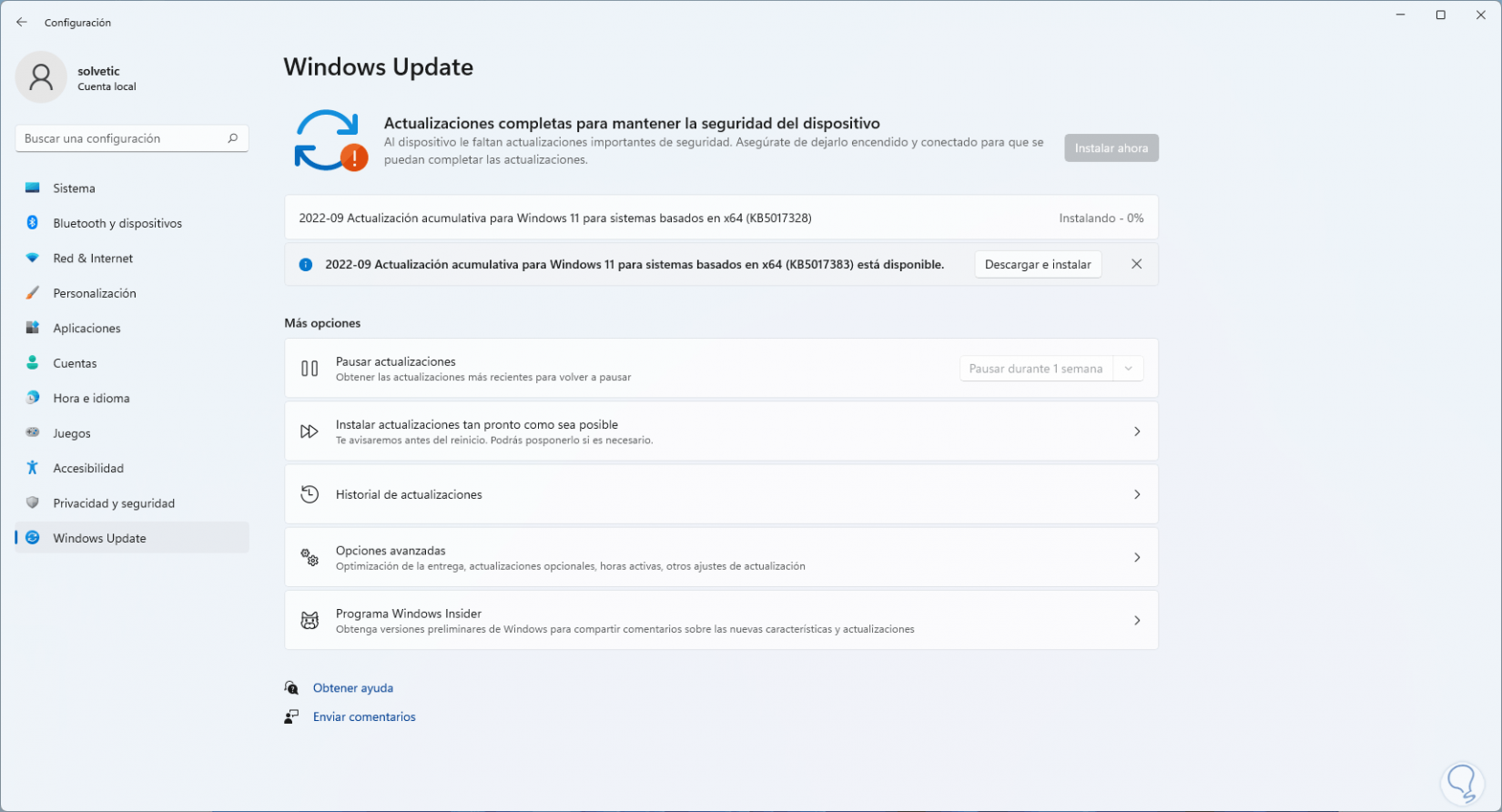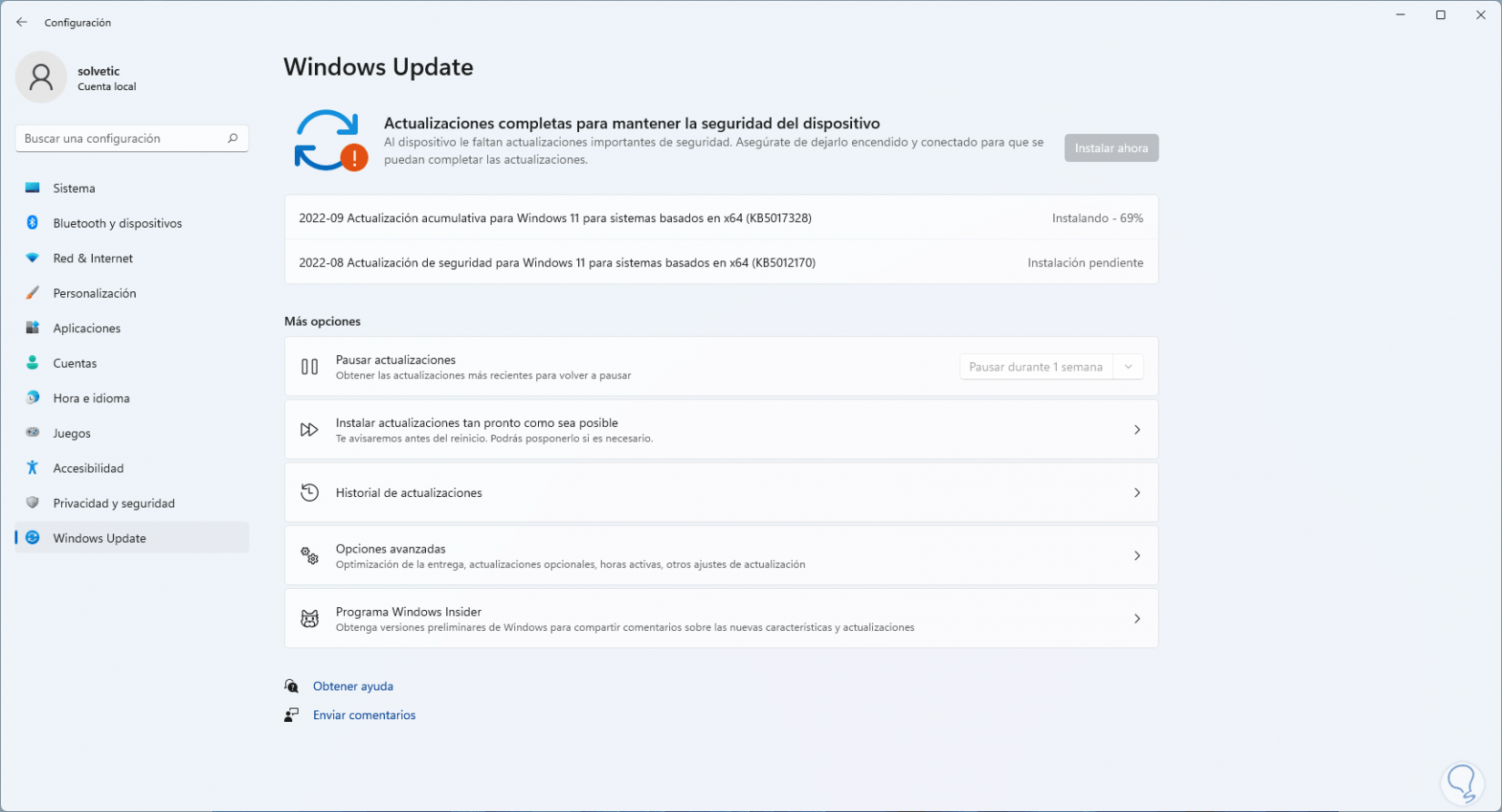 Instalamos todas las actualizaciones disponibles en ese momento ya que muchas veces la actualización a Windows 11 22H2 no estará disponible al no instalar primero estas: