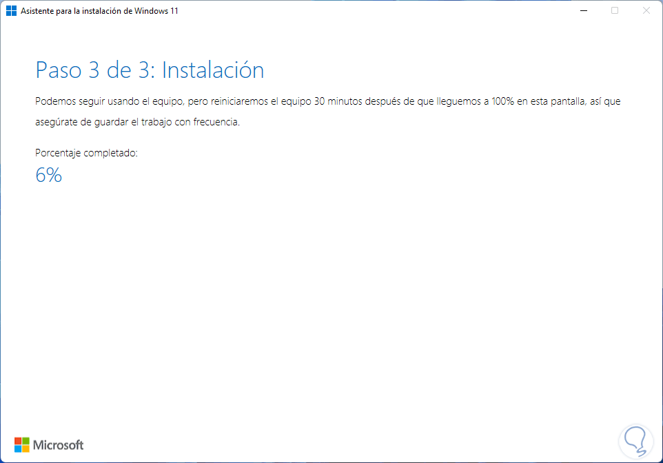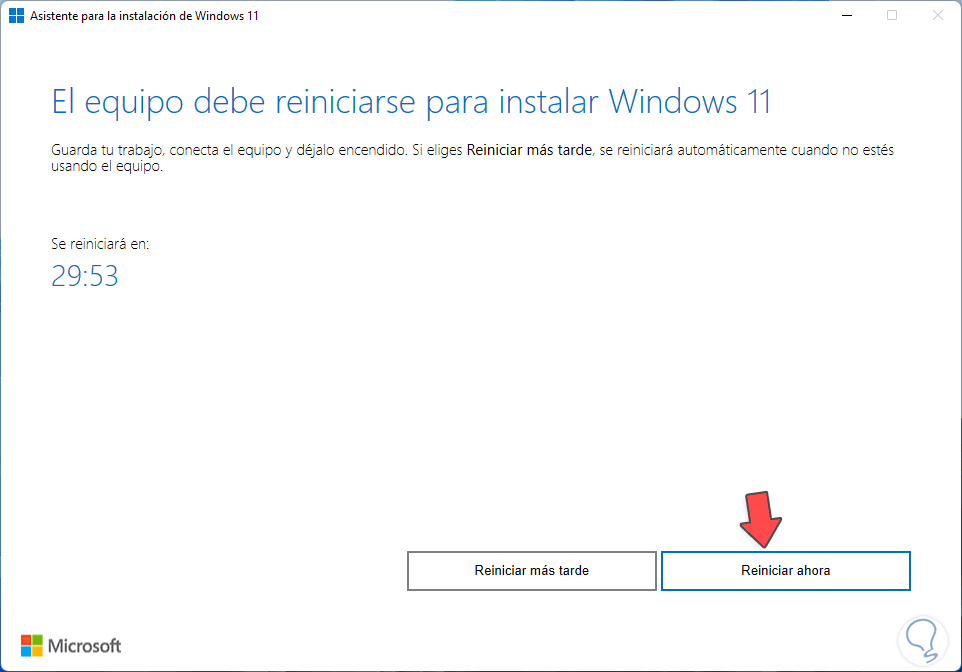 Damos clic en "Reiniciar ahora" para aplicar la actualización a Windows 11 22H2 y veremos el siguiente mensaje:
