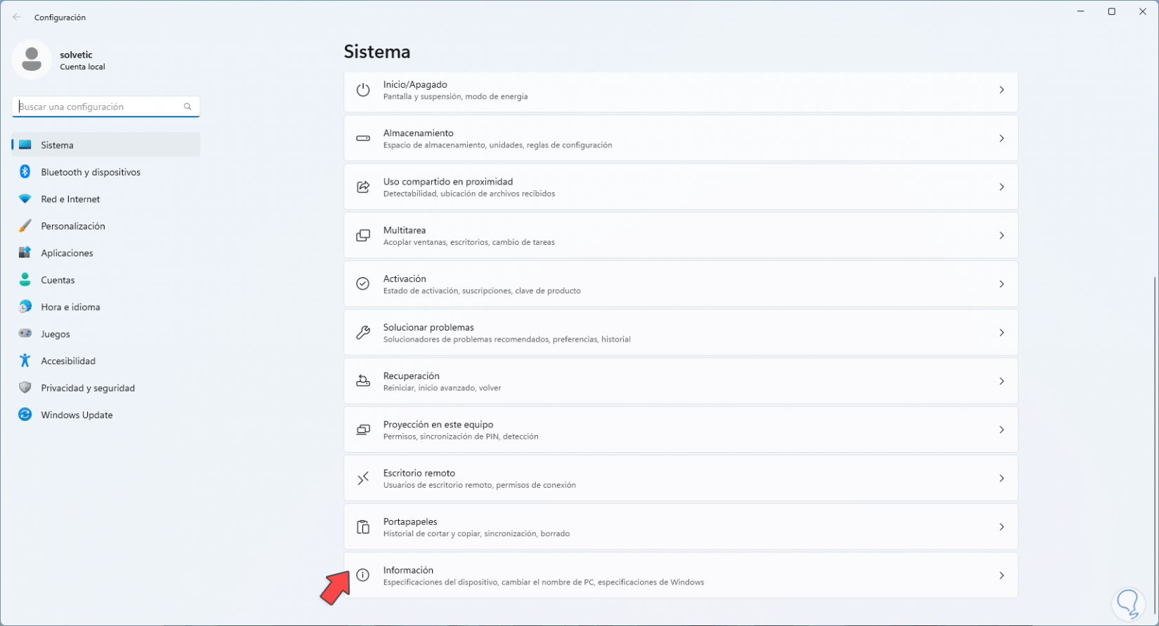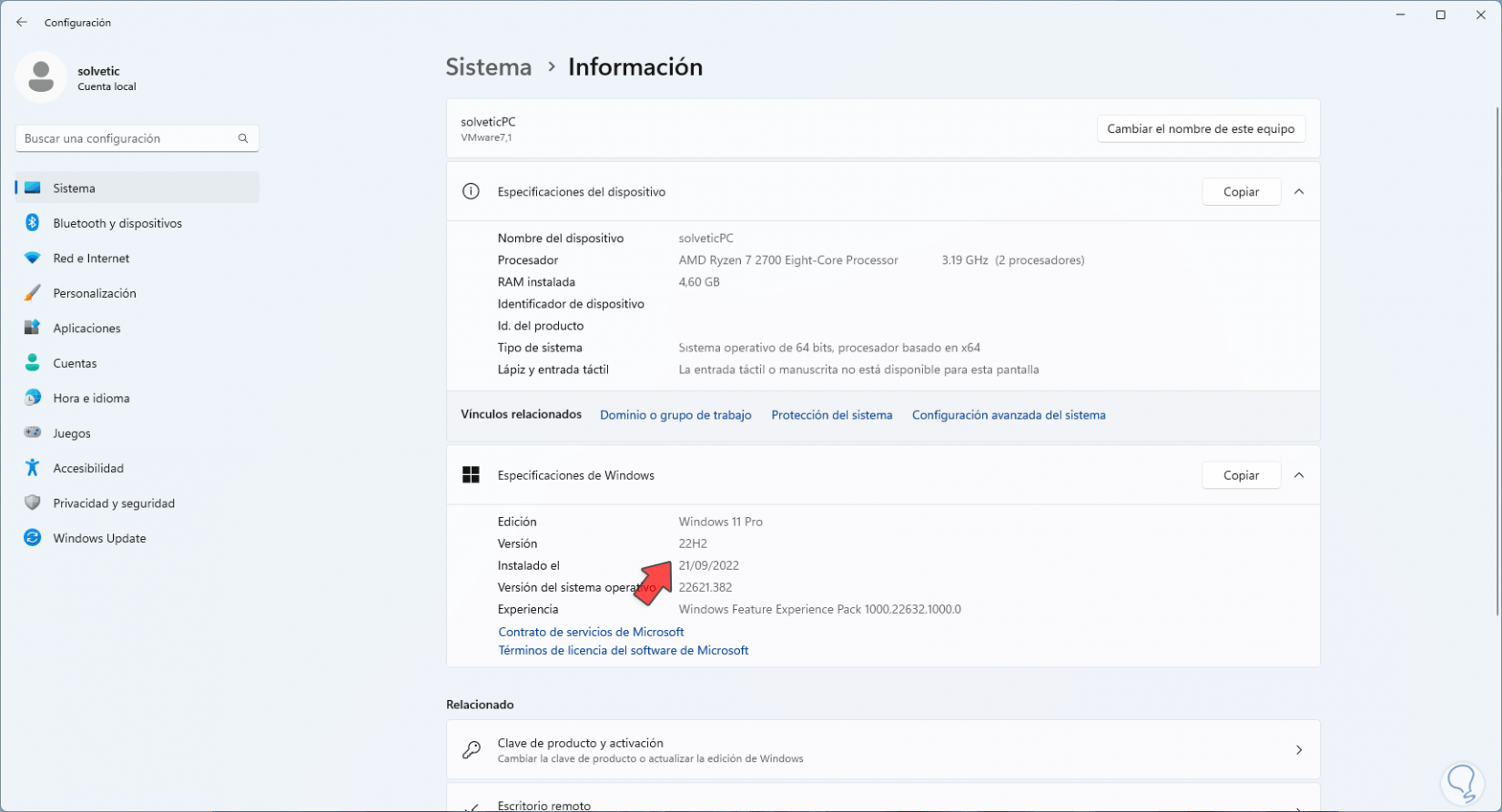 Comprobamos la versión de Windows 11, para ello vamos a la ruta: