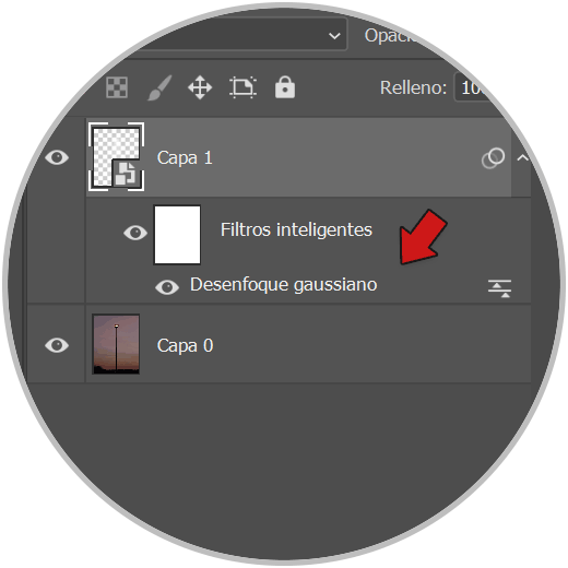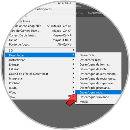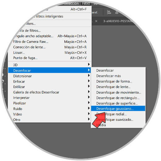 Ya podemos aplicar nuestro desenfoque de manera no destructiva. Para ello iremos al siguiente menú: