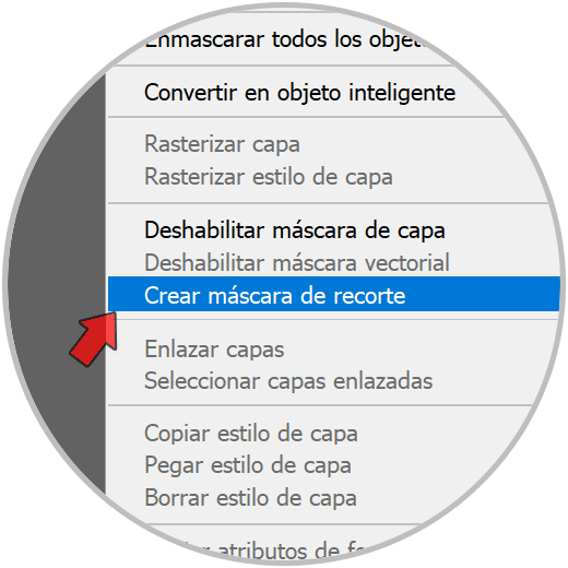 Como queremos que solo se aplique a la capa inferior de los rayos de luz, hacemos clic derecho sobre la capa de ajuste y elegimos “Crear máscara de recorte”.
