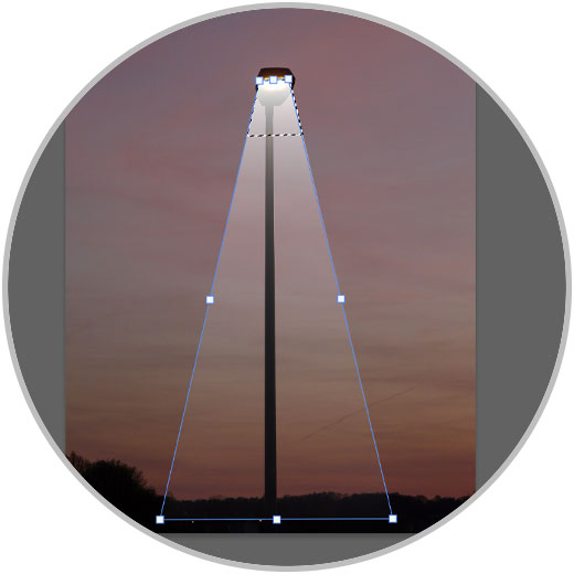 Ahora vamos a hacer una selección en la parte donde irían los rayos de luz de nuestra fuente lumínica