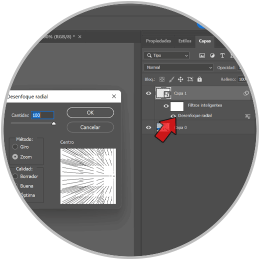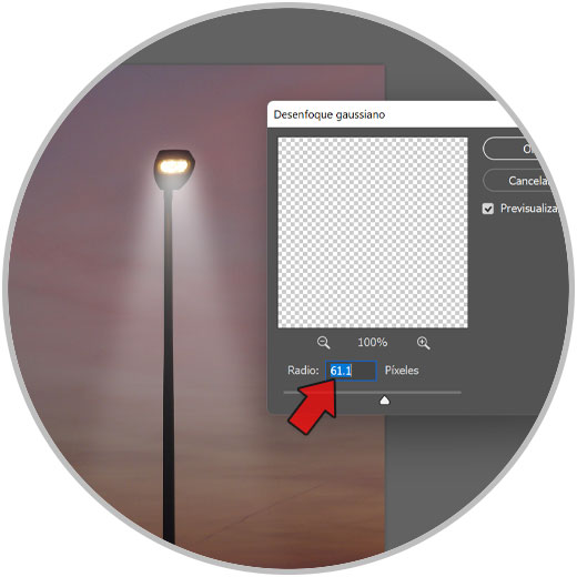 Aquí aplicaremos valores personalizados en función de la fuente y del efecto que queramos dar. En este caso en Radio vamos a dejar unos valores cercanos al 60 – 62 de píxeles.
