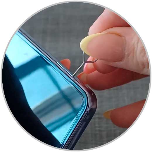 Ahora, introducimos el extremo de la llave en el pequeño agujero que encontramos en el costado izquierdo del terminal. Cuando notemos que hace un pequeño click, extraemos la bandeja.