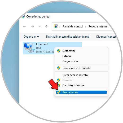 Damos clic derecho sobre el adaptador de red y seleccionamos "Propiedades":